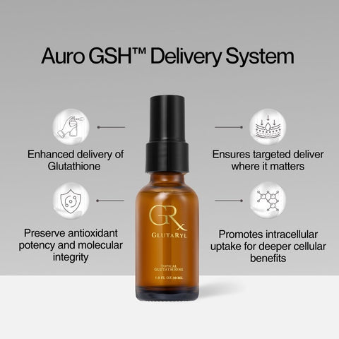 The innovative and patented design of this technology protects Glutathione from oxidation, maintaining its integrity during delivery to provide maximum potency. Glutathione is typically highly reactive to oxidation, making it difficult to stabilize, but Auro’s Glutaryl technology uniquely solves this challenge with a breakthrough preservation method so that its fullest effects can be achieved.